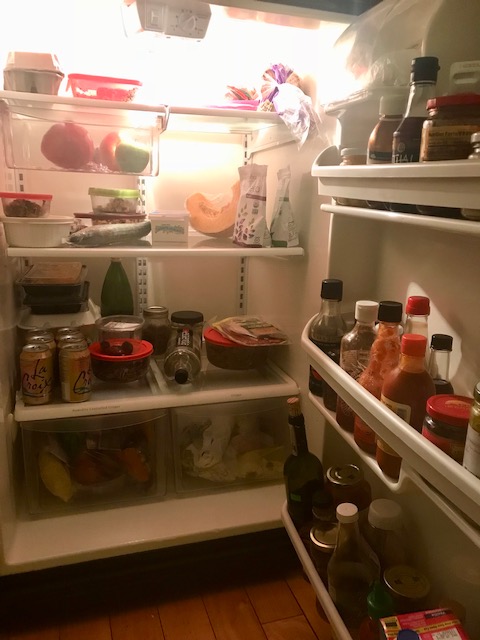 Q: Last, can we get a photo of the inside of your fridge? Champagne bottles, coffee creamer, and all? Lol. Or maybe you can list the food and kitchen staples you always have on-hand?